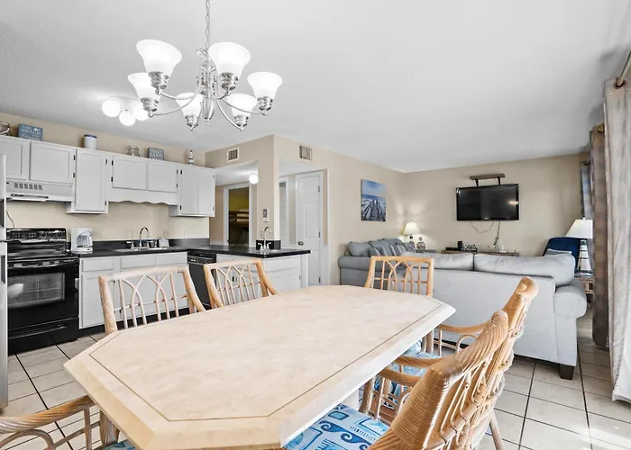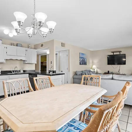 Myrtle Beach Resort B112 villa includes a dining area with a fridge, an oven, and kitchenware. The property offers to enjoy a swimming pool, as well as a fitness room, providing plenty of options for relaxation and exercise.